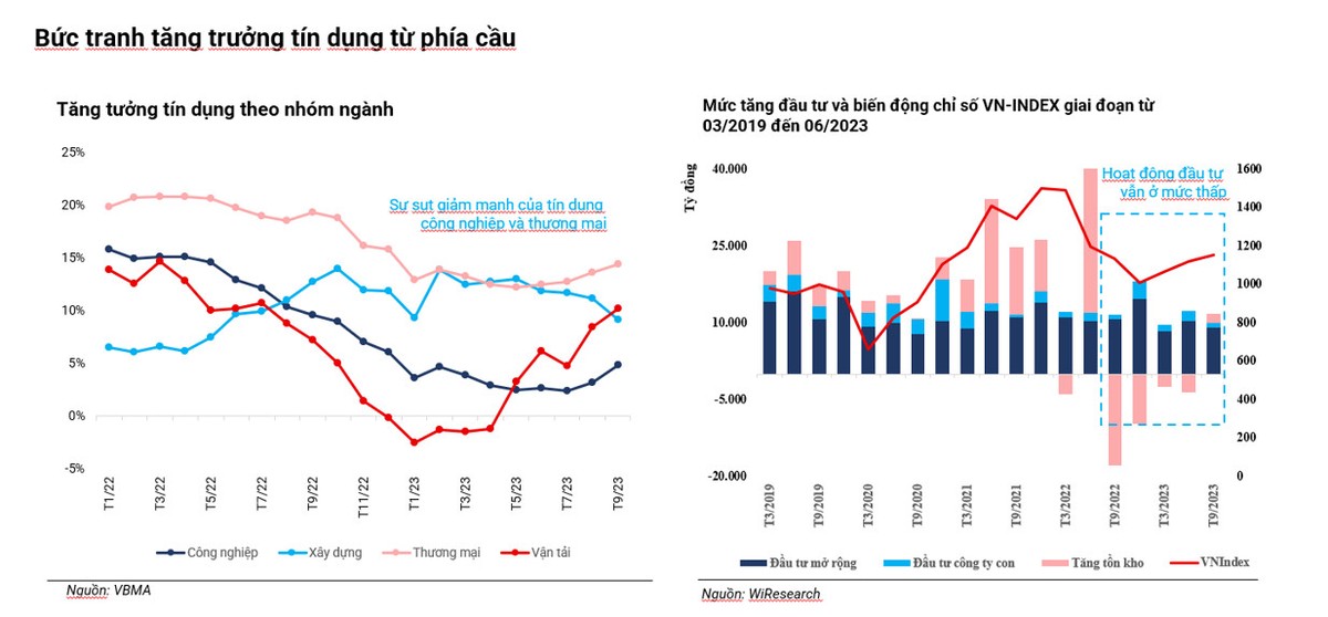 Tuy nhiên, trước bối cảnh sức cầu tiêu thụ bất động sản vẫn rất thấp thì triển vọng tăng trưởng của cặp nhóm ngành bất động sản và xây dựng trong thời gian thời gian tới vẫn rất mập mờ. Số liệu thống kê từ Hiệp hội Bất động sản Việt Nam cho thấy, trong vòng 10 tháng đầu năm, tỷ lệ hấp thụ nguồn cung mới của bất động sản hiện tại thấp hơn mức 20%, thấp hơn rất nhiều so với những năm trước. Giá bán căn hộ vẫn duy trì ở mức cao khi không giảm so với năm trước, điều này khiến nguồn cầu vẫn tiếp tục trong trạng thái chờ đợi, với kỳ vọng thị trường điều chỉnh giá đầu năm 2024.