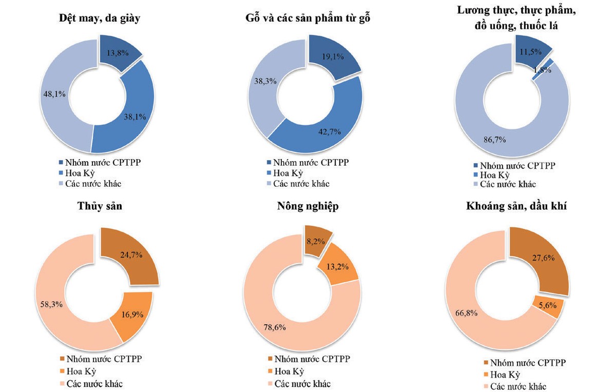 Đối với lĩnh vực nông nghiệp, kim ngạch xuất khẩu các sản phẩm nông nghiệp của Việt Nam sang nhóm các nước CPTPP tương đối thấp, ước đạt 1,3 tỷ USD năm 2017, chiếm khoảng 8,2% trong tổng kim ngạch xuất khẩu năm 2017.