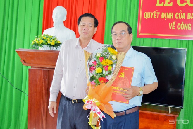 Phó Bí thư Thường trực Tỉnh ủy Sóc Trăng trao quyết định và chúc mừng đồng chí Quách Hoàng Sáu.