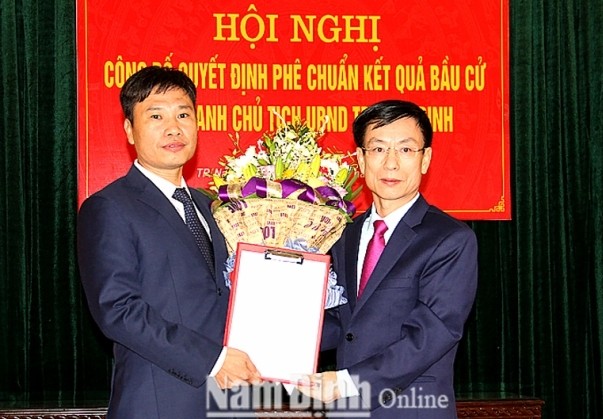 Chủ tịch UBND tỉnh Nam Định Phạm Đình Nghị vừa trao Quyết định số 2448/QĐ - UBND của UBND tỉnh về việc phê chuẩn đồng chí Hoàng Nguyên Dự, Phó Bí thư Thành ủy Nam Định nhiệm kỳ 2015 - 2020 giữ chức vụ Chủ tịch UBND thành phố Nam Định, nhiệm kỳ 2016 - 2021.