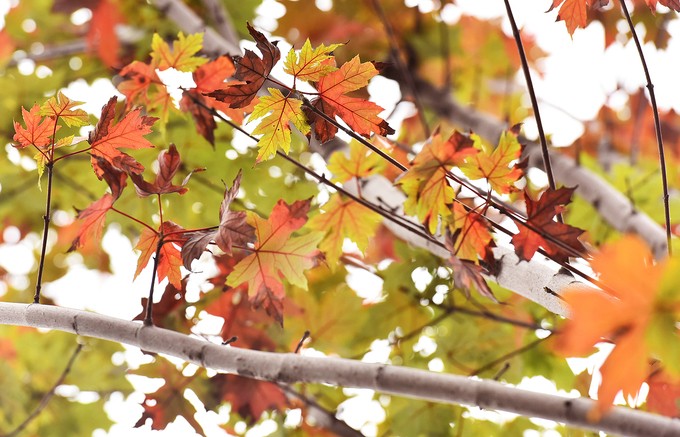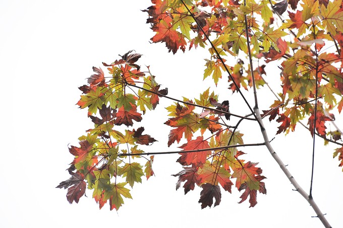 Hiện số lượng cây phong có lá chuyển sắc đỏ chưa nhiều, du khách và người dân chỉ có thể quan sát khi đứng gần hàng cây.