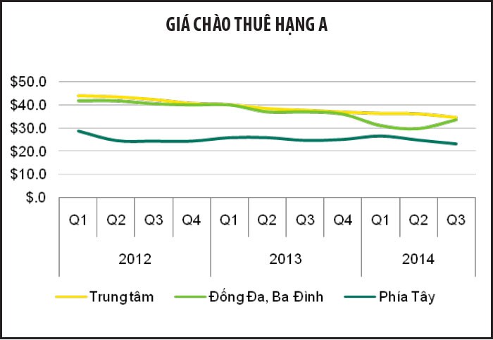 Tại khu vực trung tâm TP.HCM, chủ đầu tư vẫn cố gắng giữ giá thuê ổn định, trong khi có khá nhiều dự án lớn chuẩn bị được đưa vào thị trường. Về ngắn hạn, giá thuê vẫn được giữ ổn định, nhưng tại khu vực ngoài trung tâm, giá thuê có chiều hướng giảm nhẹ.