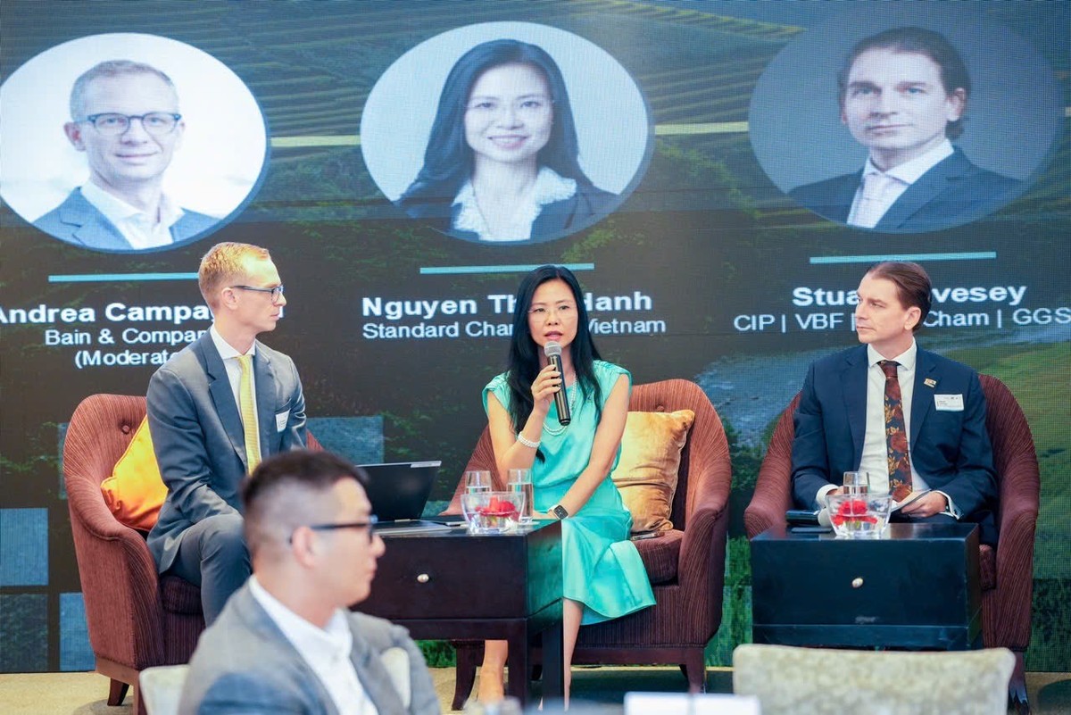 Bà Nguyễn Thúy Hạnh, Tổng giám đốc kiêm Giám đốc Khối Khách hàng Doanh nghiệp và Đầu tư, Standard Chartered Việt Nam, nhấn mạnh tầm quan trọng của sự kiện mang lại cơ hội hiếm có để các lãnh đạo doanh nghiệp và chuyên gia trong ngành thảo luận về các sáng kiến tài chính xanh và đầu tư bền vững.