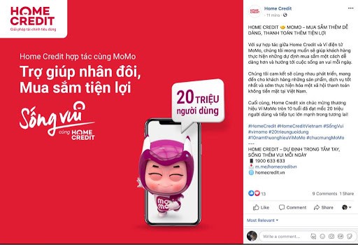 Công ty tài chính tiêu dùng SHB cho biết, “đặc biệt cảm ơn MoMo đã chia sẻ và hướng đến giá trị quan trọng mà SHB Finance luôn đặt lên hàng đầu, đó là tạo ra những trải nghiệm mới mẻ, và tiện ích cho khách hàng”.