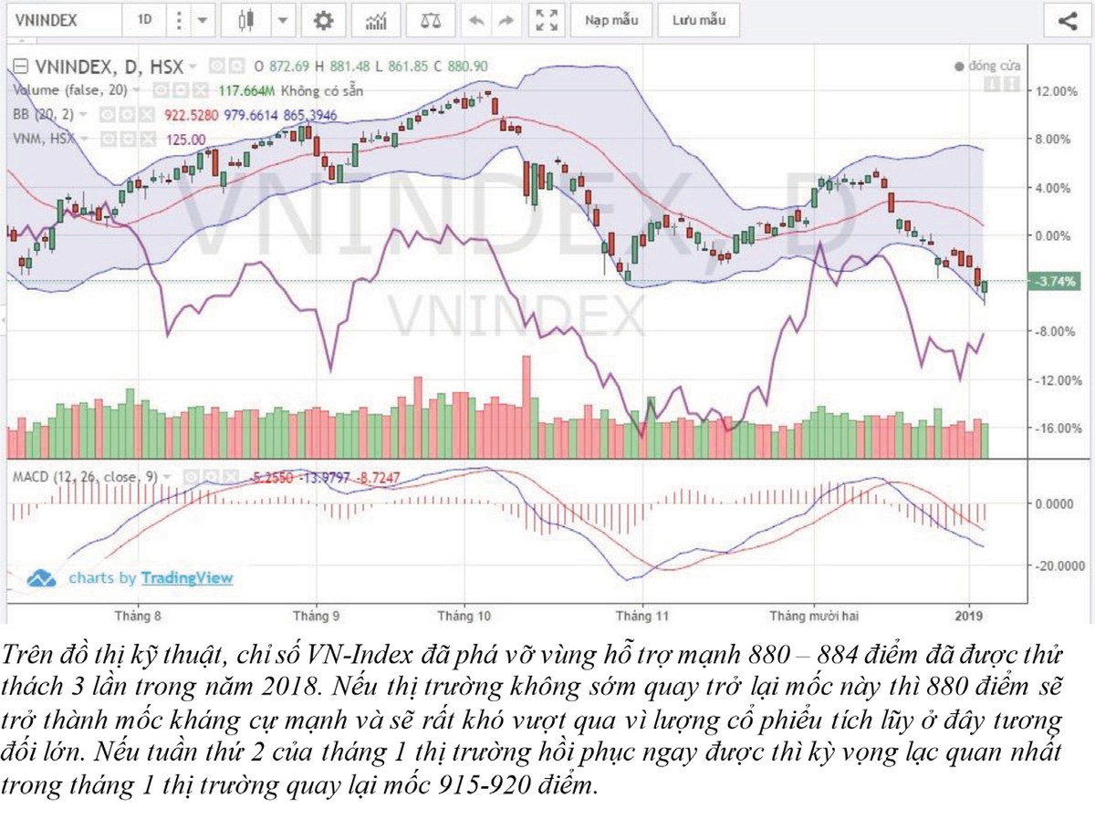 Chỉ số VN-Index có lúc phá vỡ ngưỡng hỗ trợ 884 điểm đã được thử thách 3 lần trong năm 2018. Điều gì có thể hy vọng thị trường ngừng giảm trong tháng 1 và có sự phục hồi?