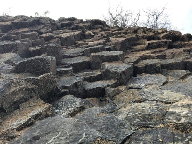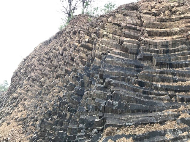 Đá chủ yếu có tiết diện hình lục giác, hình vuông, lớp nọ xếp nối lên lớp kia, giống như đĩa chồng lên nhau.