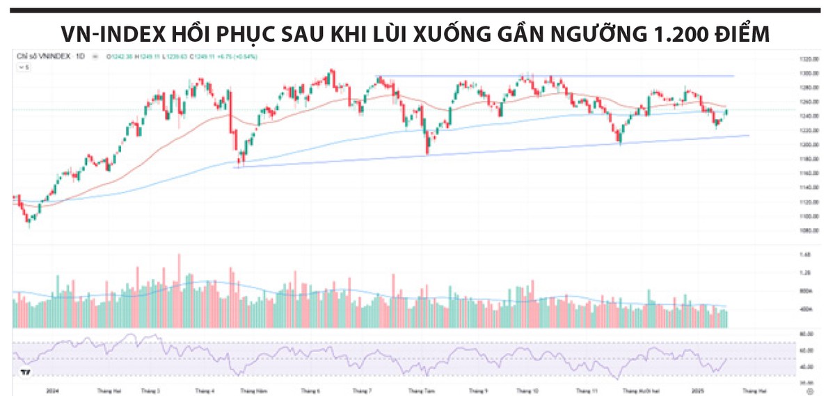 Theo dự báo nhiều công ty chứng khoán, VN-Index năm 2025 có thể dao động phổ biến trong khoảng 1.400 - 1.500 điểm, nhờ vào triển vọng tích cực từ nhiều yếu tố hỗ trợ. Lợi nhuận của các doanh nghiệp niêm yết được kỳ vọng tăng từ 16 - 19%, tập trung ở các nhóm ngành như ngân hàng, bất động sản, công nghệ và các cổ phiếu hưởng lợi từ đầu tư công. Một trong những động lực chính là môi trường lãi suất vay đang dần ổn định và có xu hướng giảm nhẹ, giúp giảm chi phí vốn, kích thích dòng tiền đầu tư vào thị trường chứng khoán. Những yếu tố này dự báo sẽ củng cố sự hấp dẫn của thị trường, tạo nền tảng vững chắc cho các cơ hội đầu tư.