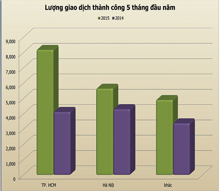 Theo Cục Quản lý nhà và thị trường bất động sản (Bộ Xây dựng), trong tháng 4/2015 lượng giao dịch bất động sản cả nước thành công tăng gấp đôi so với cùng kỳ năm trước. Trong đó, riêng tại Hà Nội là 1.600 giao dịch và TP. HCM và 1.400 giao dịch thành công.