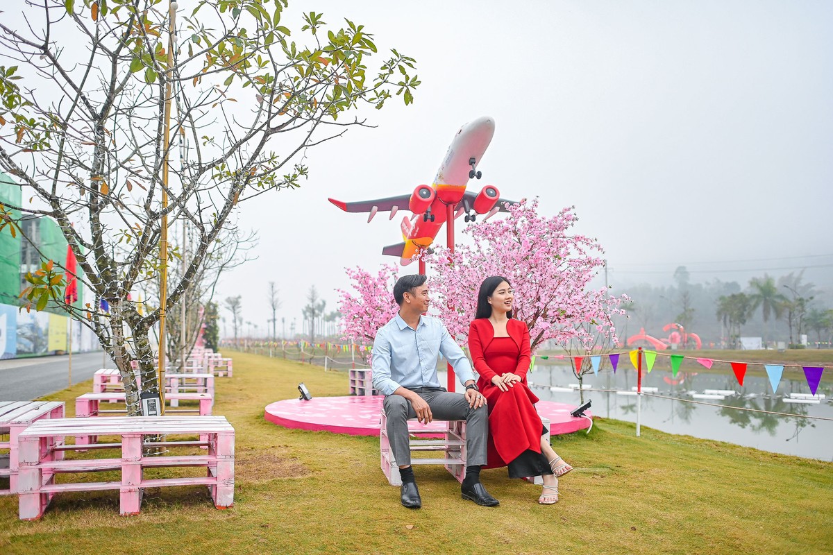Với chị Lê Hòa và anh Dương Toàn (Hà Nội), tham gia lễ hội hoa đào xứ Lạng 2023, cả hai đã nhân cơ hội chụp một bộ ảnh check-in độc đáo bên những tiểu cảnh trang trí được đầu tư công phu tại khu đô thị Mailand Hoàng Đồng.