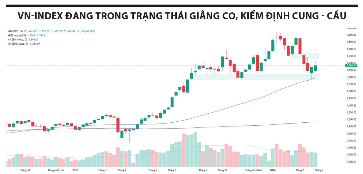 Thị trường vẫn trong trạng thái giằng co, kiểm định cung - cầu. Nhịp tăng đầu tuần khi tiếp cận ngưỡng 1.700 điểm chủ yếu mang tính kiểm định, trong bối cảnh lực cầu chưa đủ mạnh để duy trì xu hướng, dẫn tới trạng thái điều chỉnh lấp “gap” và sự quay trở lại của lực bán chủ động.