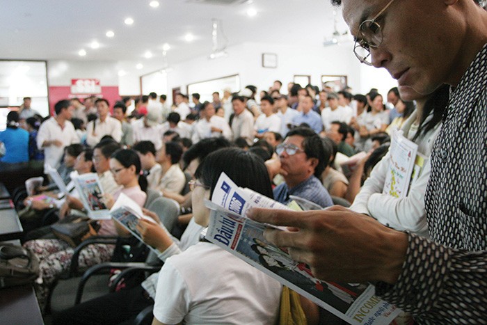 Đã nhiều năm trôi qua kể từ thời khắc đó đến bây giờ, tôi vẫn thực sự không hiểu tại sao mình lại có thể bình tĩnh xử lý tình huống quá nhạy cảm này, vì không khí lúc đó vô cùng ồn ào và căng thẳng cao độ. Nhiều người la ó, một số người nhảy chồm chồm đầy bức xúc. Người thì chất vấn: “Tại sao Ủy ban Chứng khoán Nhà nước cho phép doanh nghiệp phát hành nhiều cổ phiếu thế, khiến cổ phiếu mất giá, trở thành giấy lộn?”. Người thì kêu: “Các công ty chứng khoán tranh mua với nhà đầu tư khi thị trường lên, còn bây giờ thị trường xuống lại tranh bán, khiến chúng tôi không thể bán được để cắt lỗ”. Người khác lại trách: “Thị trường còn đang bấp bênh thế này mà đã đòi thu thuế, bây giờ lỗ trắng ra thì có bù cho chúng tôi không?”…