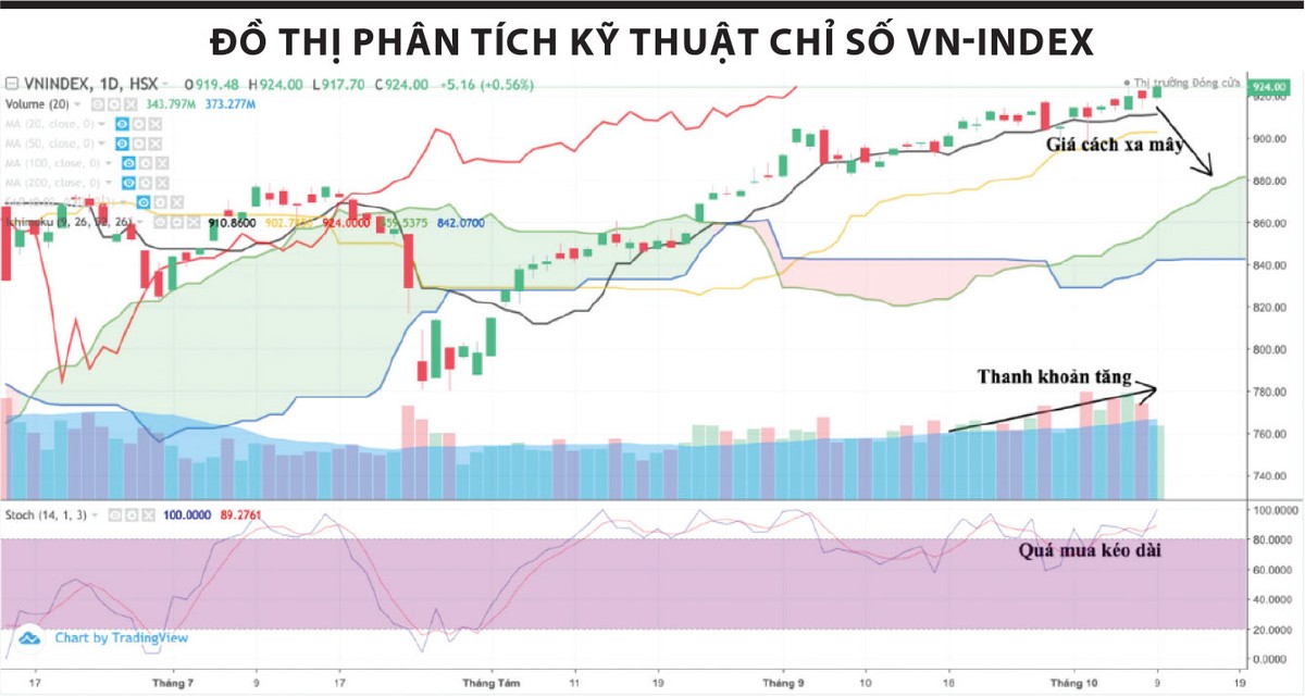 Theo đó, thị trường có khả năng sẽ điều chỉnh để thu hẹp khoảng cách giữa đường giá và mây Ichimoku, cũng như tạo mặt bằng giá hấp dẫn hơn, qua đó duy trì sức hấp dẫn nhà đầu tư. Vùng hỗ trợ của chỉ số VN-Index đang là 880 - 900 điểm, vùng kháng cự 942 - 950 điểm.