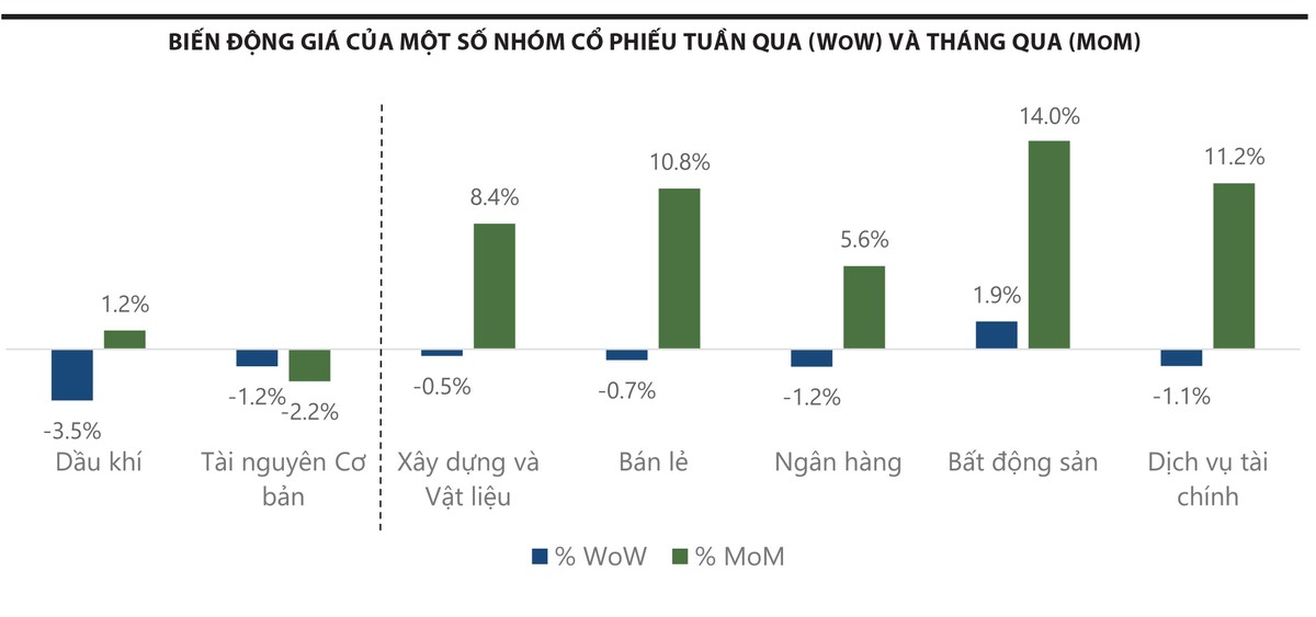 Nhóm cổ phiếu xây dựng và vật liệu, bán lẻ, ngân hàng, bất động sản, dịch vụ tài chính được đánh giá là nhóm cổ phiếu khỏe, có dòng tiền nâng đỡ và mua lên.