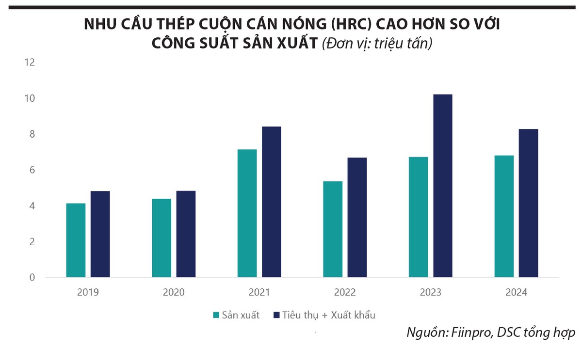 Dự kiến, Hòa Phát (mã HPG) sẽ được hưởng lợi nhiều khi sản lượng tiêu thụ HRC có khả năng cải thiện đáng kể nhờ việc mở rộng công suất tại Khu liên hợp Dung Quất. Với vị thế dẫn đầu và khả năng tự chủ nguồn cung, Hòa Phát không chỉ tận dụng tốt hơn nhu cầu trong nước, mà còn giảm sự phụ thuộc vào nguồn nhập khẩu.