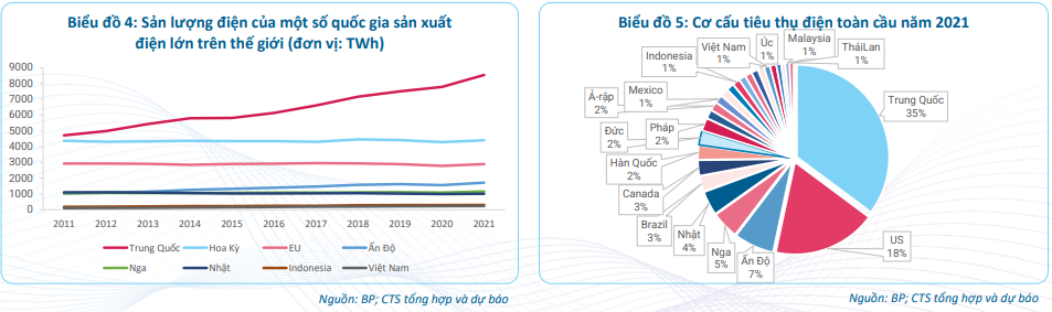 Tổng sản lượng tiêu thụ điện trên toàn thế giới đạt 28.466 TWh, tăng 6,2% vào năm 2021 - tương tự như mức tăng mạnh trở lại vào năm 2010 hậu khủng hoảng tài chính (6,4%). Đáng chú ý, than vẫn là nguồn nhiên liệu chủ đạo của nguồn điện vào năm 2021, với tỷ trọng tăng lên 36%, tăng từ 35,1% vào năm 2020.