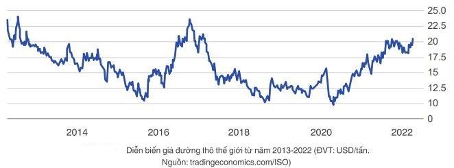 Theo dữ liệu của tradingeconomics.com về giá đường qua các năm, với mức tăng vào cuối tháng 3 và đầu tháng 4, mức giá đường thô thế giới đã đạt mức cao nhất kể từ năm 2017.
