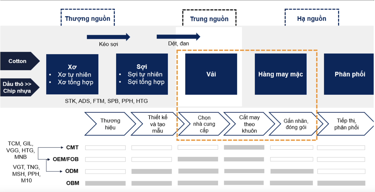 Nhóm chuyên gia VNDirect kỳ vọng ba phân khúc trong chuỗi giá trị sẽ lần lượt phục hồi kể từ nửa cuối năm 2023 với các động lực hỗ trợ trong ngắn và trung hạn, do đó những khó khăn của ngành dệt may đang đi đến hồi kết và nhóm xơ sợi là phân khúc đầu tiên thể hiện sự phục hồi.