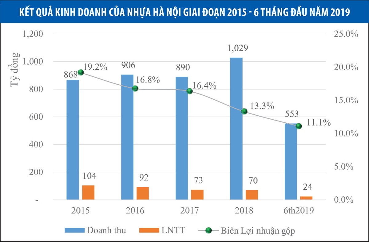 Tại Ðại hội đồng cổ đông thường niên 2019, Nhựa Hà Nội đã đặt kế hoạch kinh doanh tăng trưởng trở lại với 1.130 tỷ đồng doanh thu và 67 tỷ đồng lợi nhuận sau thuế, lần lượt tăng 9,8% và 20% so với thực hiện 2018.