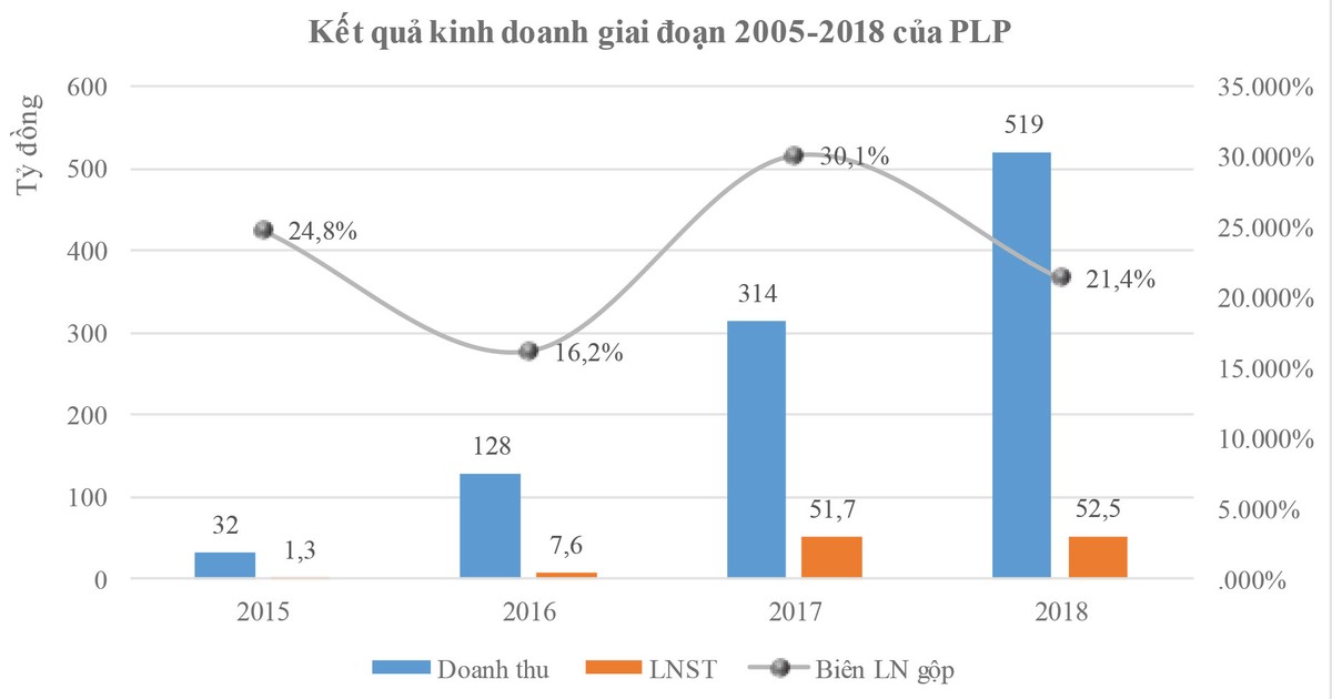 Lũy kế cả năm 2018, PLP ghi nhận doanh thu 525,7 tỷ đồng, tăng 67,4% so với năm 2017 và vượt 25,17% kế hoạch đề ra, nhưng lợi nhuận sau thuế chỉ mới hoàn thành 86% kế hoạch, đạt 52,47 tỷ đồng.