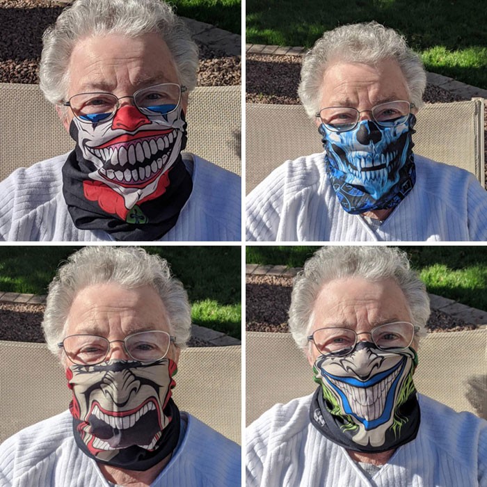 Bà ngoại biến tấu với những chiếc khẩu trang mang phong cách hoạt hình.