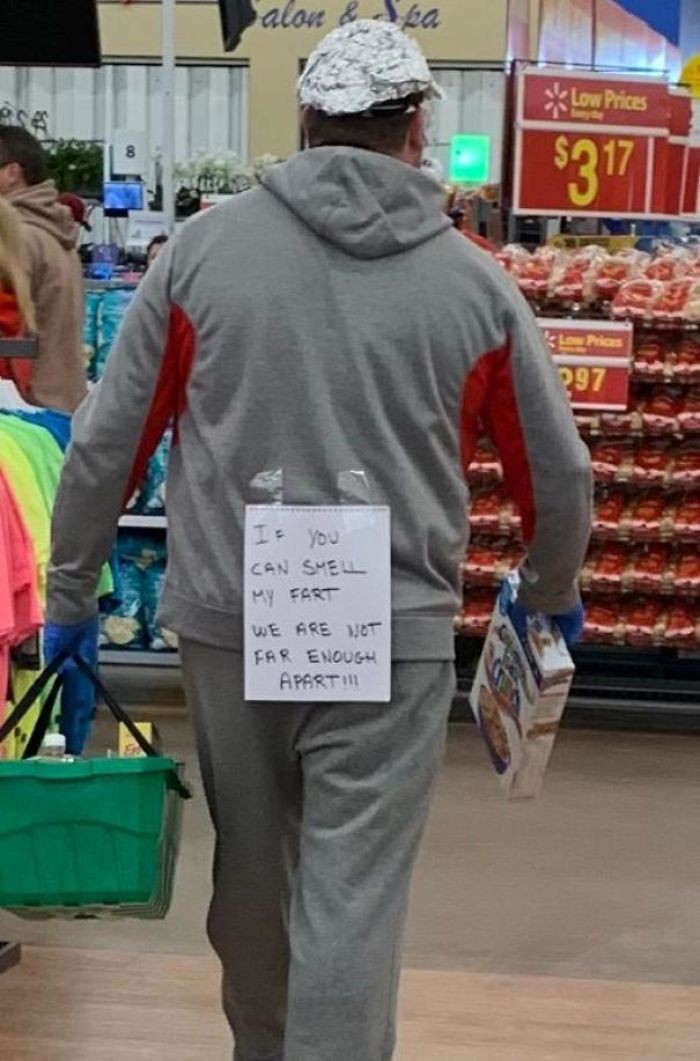 "Nếu bạn ngửi thấy mùi xì hơi của tôi điều đó có nghĩa chúng ta đang vi phạm khoảng cách an toàn 2 m đó!!!"