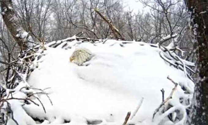 Một con chim đại bàng đang ấp trứng trong tổ vào mùa đông năm 2015. Bức ảnh này được chụp ở Pennsylvania, Mỹ. Ảnh: Pennsylvania Game Commissio.