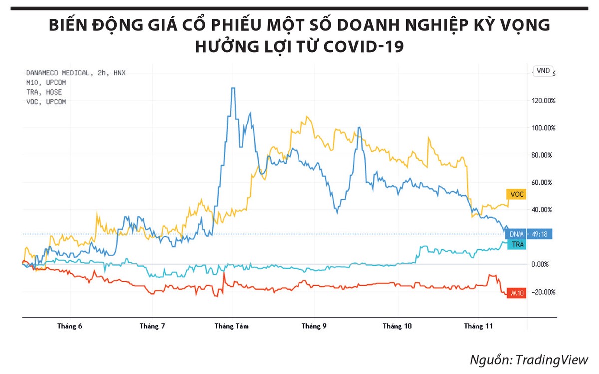 Một số doanh nghiệp ghi nhận kết quả kinh doanh tăng trưởng vượt bậc, điển hình là Tổng công ty cổ phần Y tế Danameco (Danameco). Nếu như các năm trước, doanh thu của Danameco chỉ quanh mức 200 tỷ đồng, riêng năm 2019 đạt 356 tỷ đồng do mở rộng mảng thiết bị y tế, thì trong quý II và III/2020, doanh thu lần lượt đạt 239 tỷ đồng và 208 tỷ đồng. Lũy kế 9 tháng đầu năm, doanh nghiệp này thu về 573 tỷ đồng doanh thu và 31 tỷ đồng lợi nhuận sau thuế, lần lượt gấp 3,8 lần và 10 lần so với cùng kỳ năm ngoái.