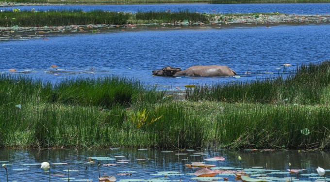 Ngay chân đồi cát Phương Mai là một đầm nước ngọt, nơi người dân thường thả trâu, bò để chúng đi kiếm ăn vào ban ngày.