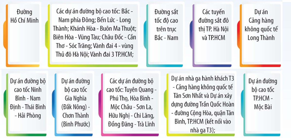 Tính đến tháng 7/2023, sau 3 lần bổ sung danh mục dự án, đến nay có 25 dự án với 75 dự án thành phần thuộc nhiệm vụ của Ban Chỉ đạo, trong đó có những công trình quy mô vốn rất lớn như: 2 dự án cao tốc Bắc - Nam phía Đông; đường Vành đai 3 TP.HCM; Vành đai 4 vùng Thủ đô Hà Nội; các dự án đường sắt đô thị TP.HCM và Hà Nội; đường sắt tốc độ cao trên trục Bắc - Nam…