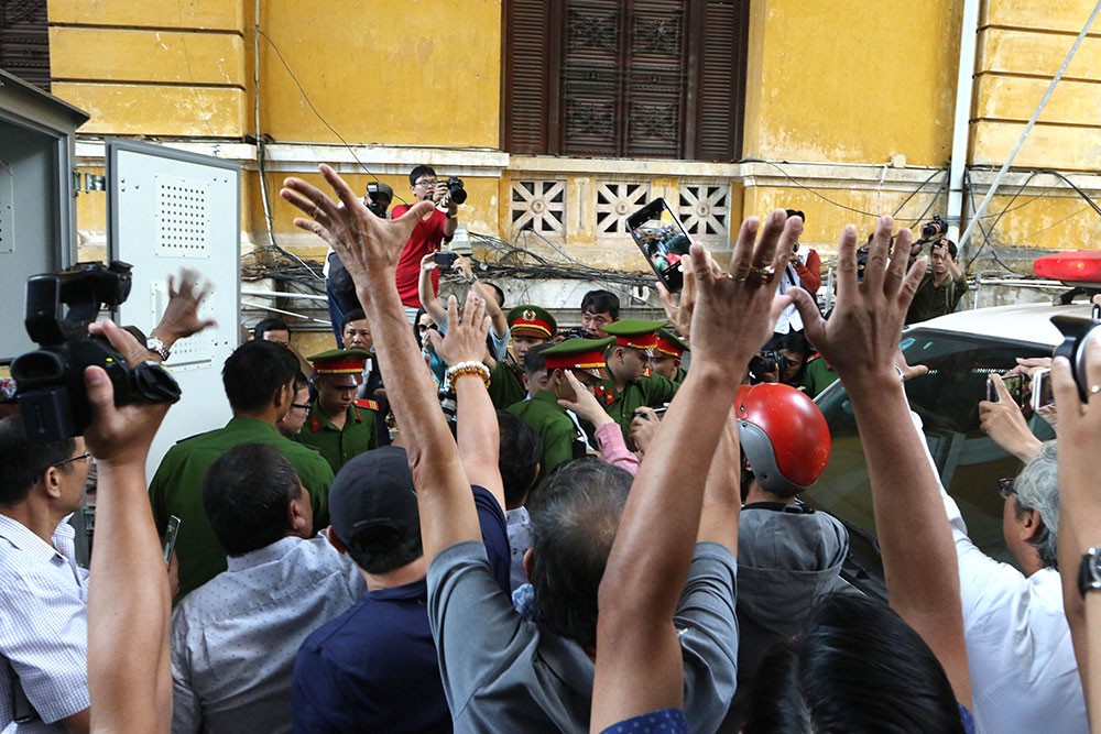 Luật sư bào chữa cho các bị cáo trả lời phóng vấn.