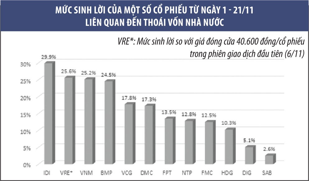 Nhiều cổ phiếu khác liên quan đến thoái vốn nhà nước cũng đạt mức sinh lời đáng kể trong tháng 11.