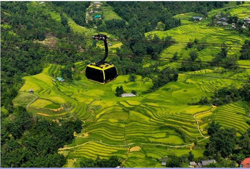 Hơn nữa, chỉ vài phút đi bộ từ bản Mây, du khách sẽ đến được ga cáp treo Fansipan, nơi khởi đầu cho hành trình khám phá nóc nhà Đông Dương. Tuyến cáp treo đưa du khách băng qua khung cảnh mây núi trùng điệp, những thửa ruộng bậc thang óng ả như “biển vàng” đến tận chân trời, suối Mường Hoa trong vắt, những cây vân sam hàng trăm năm tuổi...