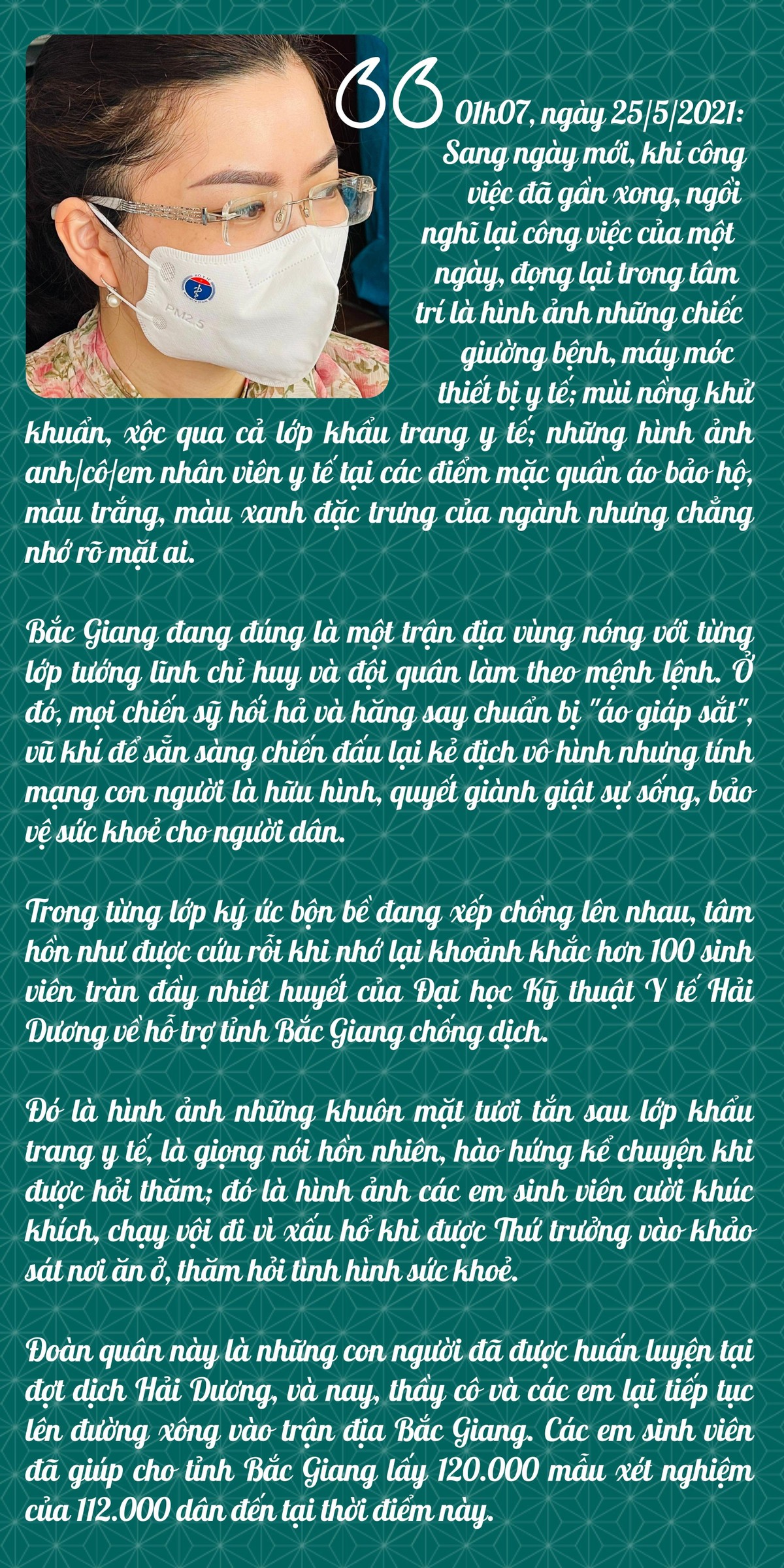 Dù vậy, trong những trang bút ký nhiều cảm xúc của Phương Thảo cũng có lúc dặn lòng phải thật mạnh mẽ để không bi lụy bởi những khó khăn chồng chất mà cả tuyến đầu chống dịch và nhân dân Bắc Giang đã và đang trải qua.