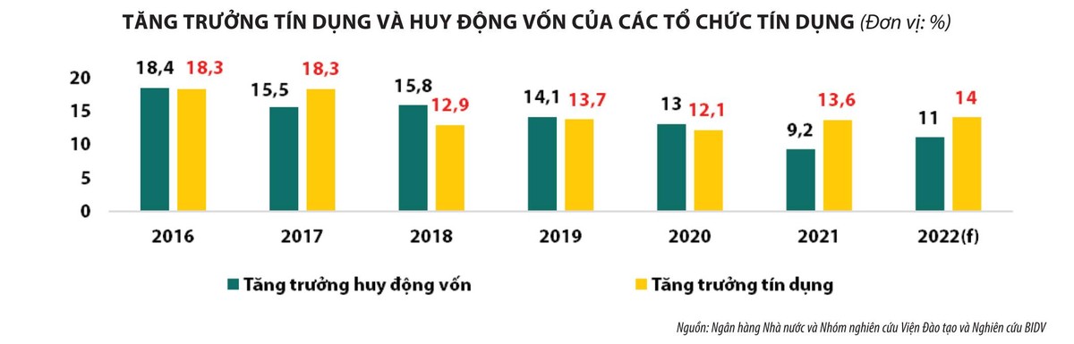 Tính đến cuối năm 2021, dư nợ tín dụng toàn nền kinh tế tăng 13,61% so với cuối năm 2020, trong khi huy động vốn chậm lại, chủ yếu do mặt bằng lãi suất thấp, dòng vốn nhàn rỗi quan tâm hơn đến kênh đầu tư bất động sản, chứng khoán…