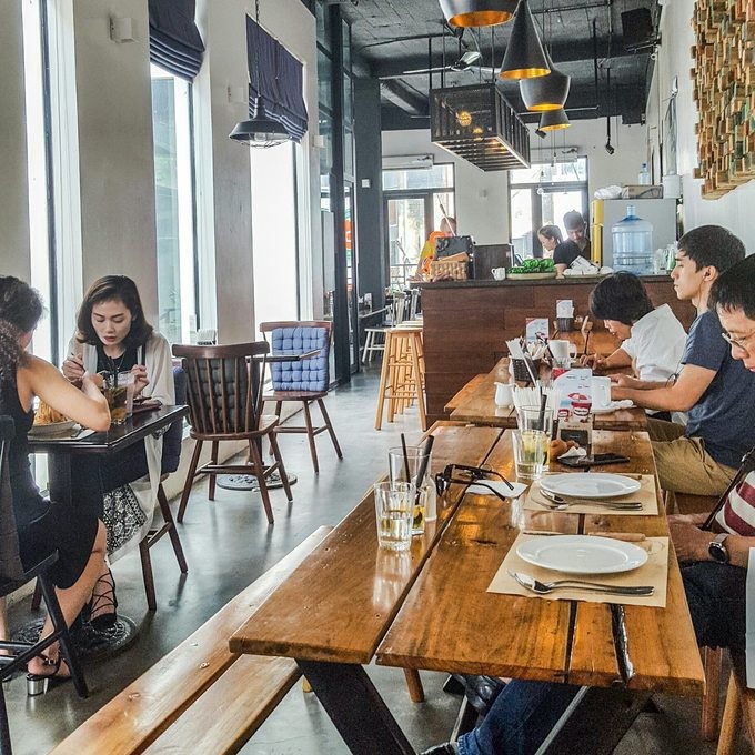 Không chỉ thoáng đãng, quán vừa có chỗ ngồi bên trong yên tĩnh cho người làm việc, đọc sách, vừa có một khu vườn nhỏ trồng cây leo xanh mát. Thực đơn đồ uống và ăn đều đa dạng. Giá đồ uống mỗi món từ 38.000 đồng và đồ ăn từ 30.000 đồng.