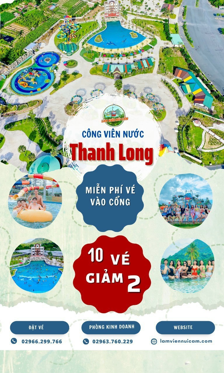 Như một Hawai thu nhỏ với những vũ điệu của sóng cuộn trào sức sống thật đáng ngạc nhiên, Thanh Long Water Park hội tụ quần thể khu vui chơi giải trí, ẩm thực phong phú sắc màu. Sau khi hòa mình thỏa thích dưới làn nước thiên nhiên trong xanh, du khách sẽ tận hưởng “bữa ăn nặng - nhẹ thật sảng khoái” bên trong khuôn viên Cáp treo núi Cấm. Nạp năng lượng tích cực để tiếp tục cho hành trình chinh phục những mục tiêu thú vị tiếp theo bằng hệ thống cáp treo đạt chuẩn.