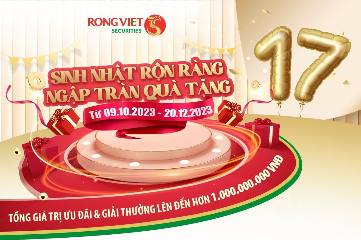 Từ ngày 09/10/2023 đến 20/12/2023, Rồng Việt triển khai chương trình khuyến mại “Sinh nhật rộn ràng - Ngập tràn quà tặng”. Khách hàng tham gia sẽ có cơ hội nhận mã số dự thưởng khi trải nghiệm tối thiểu 3 trong 4 sản phẩm (iDragon Pro, eduDragon, smartDragon, smartDragon iBot) - tiêu chí này áp dụng cho cả khách hàng mới và khách hàng đã có tài khoản chứng khoán tại Rồng Việt.