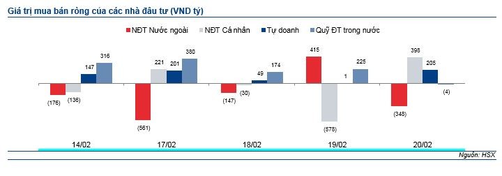 Dù khối ngoại vẫn duy trì xu hướng bán ròng, nhưng áp lực đã giảm đáng kể so với tuần trước, với một phiên mua ròng giữa tuần. Thị trường đối diện áp lực chốt lời khi VN-Index tiến sát vùng kháng cự mạnh 1.300 điểm, nhưng lực cầu từ khối tự doanh vẫn duy trì. Đáng chú ý, dòng tiền tập trung vào nhóm vốn hóa vừa và nhỏ, với các ngành dẫn dắt gồm bảo hiểm, hóa chất, ngân hàng, bất động sản khu công nghiệp, xây dựng và vật liệu.