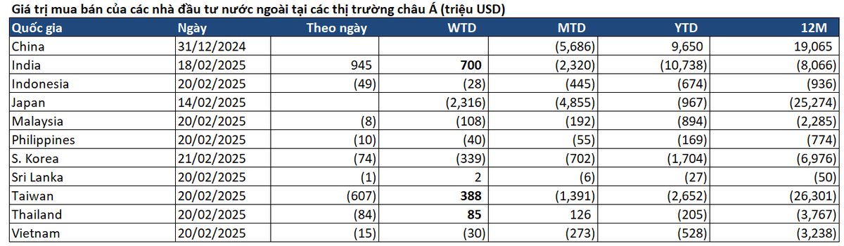 Theo dữ liệu Bloomberg, tính đến ngày 20/2/2025, dòng vốn nước ngoài đã bắt đầu quay trở lại châu Á, đặc biệt tại Ấn Độ, Thái Lan và Đài Loan (Trung Quốc). Giới phân tích cho rằng, những rủi ro tại Mỹ liên quan đến thuế quan, lãi suất, công nghệ và biến số chính sách từ Trump đang thúc đẩy nhà đầu tư dịch chuyển dòng tiền sang các thị trường khác, nơi có triển vọng tăng trưởng ổn định hơn.