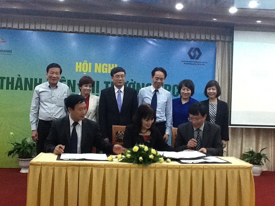 Chủ tịch UBCKNN Vũ Bằng chứng kiến lễ ký kết biên bản hợp tác giữa Sở giao dịch chứng khoán Hà Nội - Trung tâm Lưu ký chứng khoán và Kho bạc nhà nước về thúc đẩy thị trường trái phiếu Chính phủ tại Hội nghị thành viên thị trường trái phiếu Chính phủ, tổ chức tại TP. Đà Lạt sáng 7/5/2014