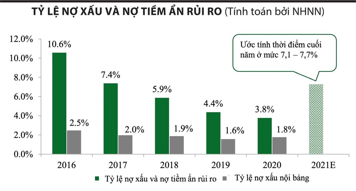 Giai đoạn 2016 - 2019, tỷ lệ nợ xấu và tỷ lệ nợ nhóm 2 có xu hướng giảm, nhưng từ năm 2020 đến nay, dịch bệnh Covid-19 khiến tỷ lệ nợ xấu và nợ nhóm 2 có dấu hiệu tăng trở lại.