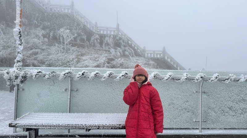 Bé Bảo Anh, một du khách đến từ Hà Nội, vui vẻ chia sẻ: "Hôm nay mẹ dẫn con lên Fansipan chơi vào ngày tuyết rơi, con thấy rất vui. Vì con được chơi nhiều trò chơi như ném bóng tuyết, khám phá cây thông và nặn người tuyết".