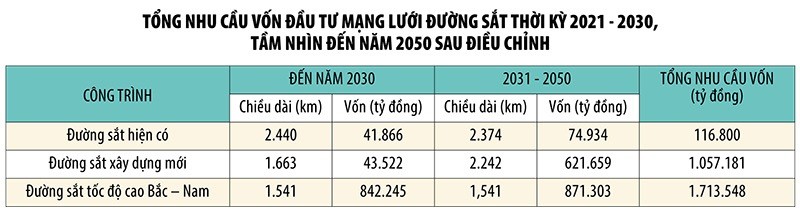 Một nội dung điều chỉnh rất đáng chú ý khác trong Tờ trình số 2078 là lộ trình triển khai nhiều tuyến đường sắt đã đề xuất được đẩy lên sớm hơn so với Quy hoạch mạng lưới đường sắt thời kỳ 2021 - 2030 và tầm nhìn đến năm 2050 được phê duyệt tại Quyết định số 1579/QĐ-TTg ngày 22/9/2021 của Thủ tướng Chính phủ (Quy hoạch số 1579).