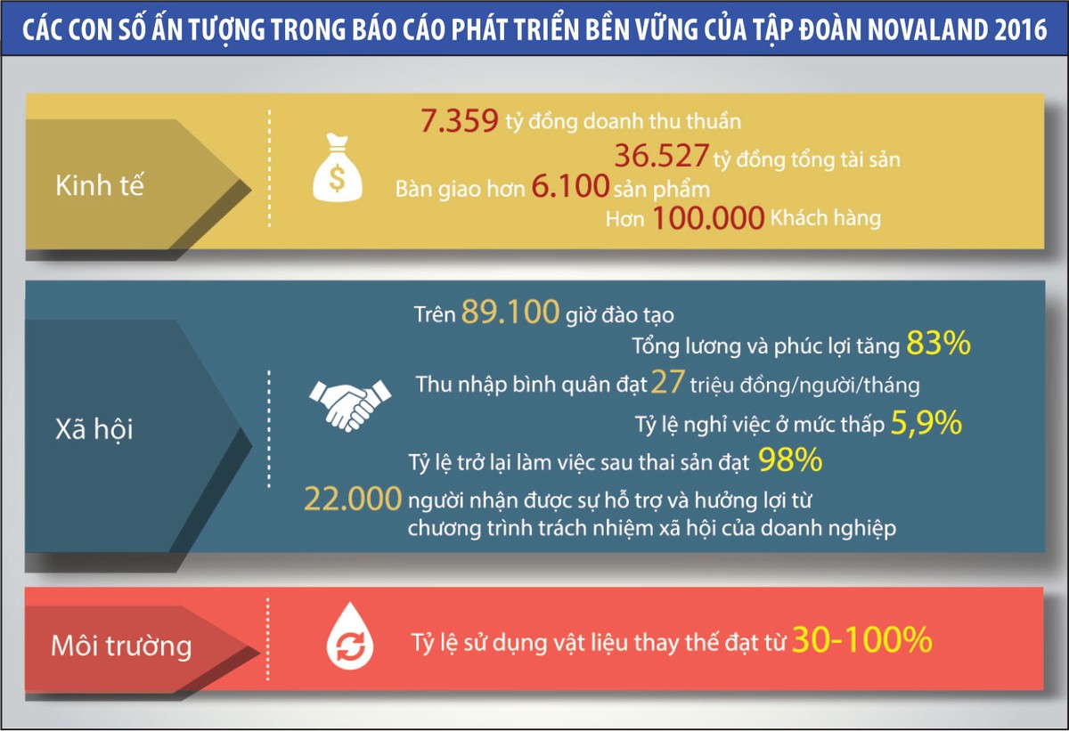 Tất cả các mục tiêu phát triển bền vững đều được chuẩn hóa bằng gần 60 chỉ số thực tế, nhằm giúp Novaland thực sự đo lường được hiệu quả do chiến lược phát triển bền vững mang lại, đồng thời từng bước hiện thực hóa hoài bão: “Trở thành tập đoàn bất động sản đẳng cấp quốc tế, với vị thế cao, phát triển vững mạnh góp phần mang lại cuộc sống hạnh phúc và thịnh vượng cho cộng đồng”.