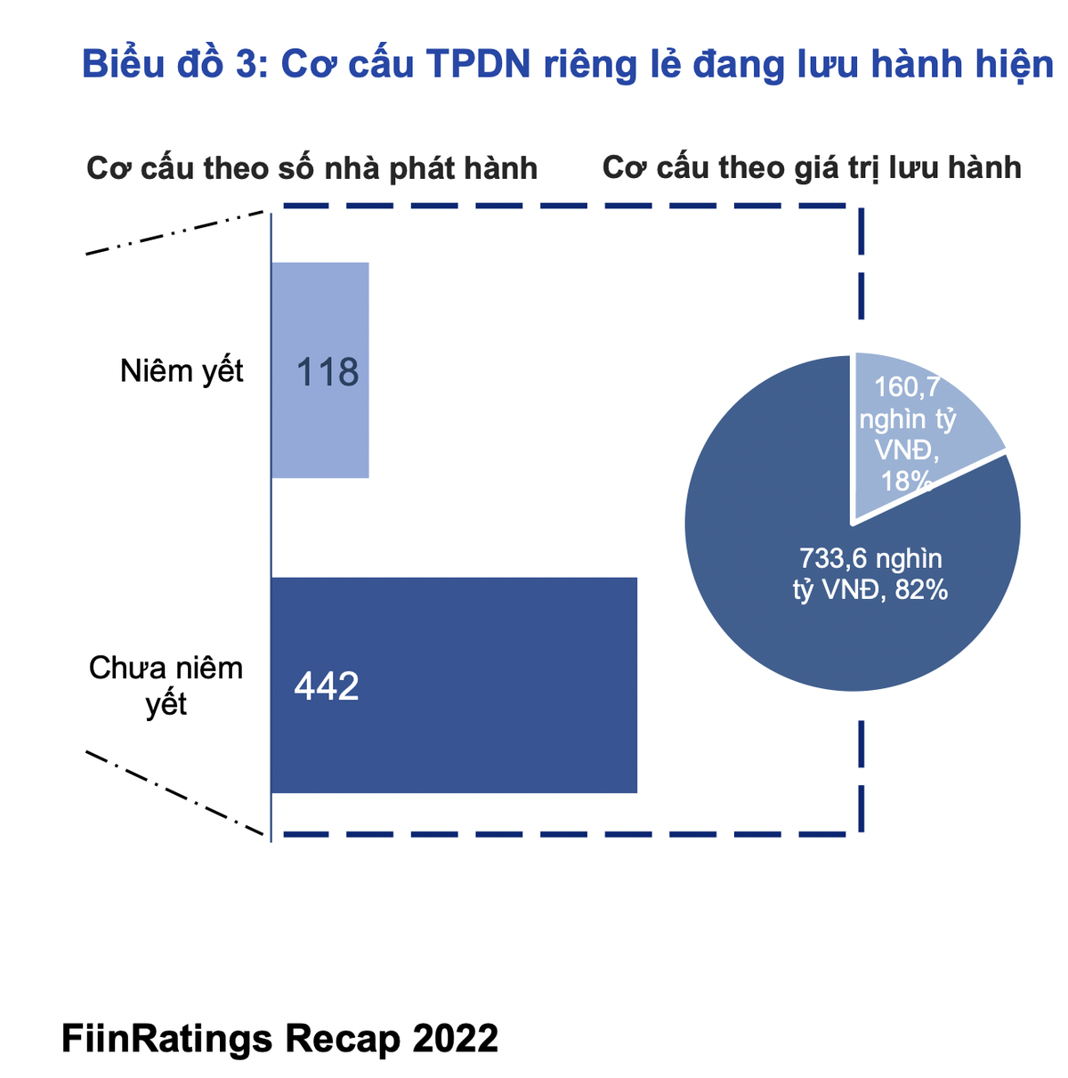 Theo Báo cáo, trên thực tế, hơn 80% giá trị trái phiếu doanh nghiệp của ngành bất động sản phát hành thuộc về các doanh nghiệp chưa niêm yết. Các doanh nghiệp này có sức khỏe tài chính ở mức yếu rất báo động và đặc biệt là thiếu minh bạch. Điều này thể hiện qua mức độ đòn bẩy tài chính, nợ vay ròng/vốn chủ sở hữu hiện ở mức lên tới 8,1 lần, trong khi các doanh nghiệp niêm yết chỉ ở mức 2,5 lần.