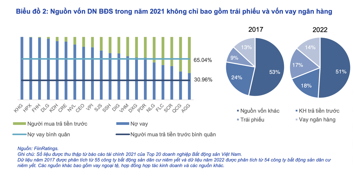 Báo cáo Nhìn lại 2022 và triển vọng thị trường vốn 2023 của của FiinRatings vừa công bố cho biết, thời gian qua, tình hình dịch bệnh và vấn đề pháp lý làm ảnh hưởng đến tiến độ triển khai dự án. Thị trường bị chi phối bởi phản ứng tâm lý của nhà đầu tư lẫn doanh nghiệp đối với các chính sách về đất đai, tài chính lẫn tín dụng đã khiến tất cả các hoạt động trong lĩnh vực bất động sản bị ngưng trệ, doanh nghiệp khó tiếp cận nguồn vốn từ tiền trả trước của người mua nhà. Bên cạnh đó, hàng loạt các quy định nhằm thắt chặt tín dụng trong môi trường lãi suất tăng đã buộc các doanh nghiệp phải tìm kiếm nguồn vốn khác thay thế và bù đắp cho các dự án.