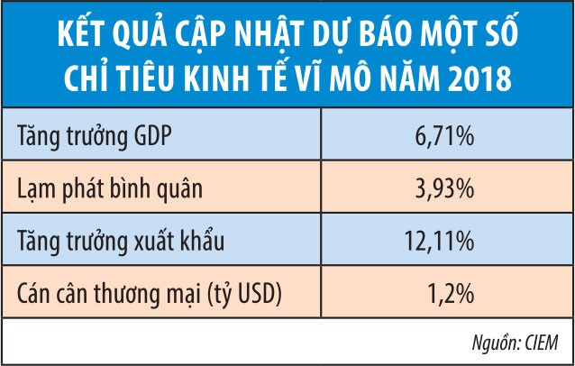 Nửa đầu năm 2018 đã trôi qua với nhiều dấu ấn kinh tế - xã hội tích cực. Đà tăng trưởng kinh tế được duy trì gắn với chuyển biến về môi trường kinh doanh, niềm tin của doanh nghiệp trong nước và có vốn đầu tư nước ngoài được củng cố. Tăng trưởng kinh tế 6 tháng đầu năm không dựa vào mở rộng tiền tệ. Cán cân thương mại tiếp tục thặng dư. Tăng trưởng kinh tế chưa kéo theo áp lực lạm phát theo chu kỳ, do ít có tác động của mở rộng tiền tệ và tài khóa.