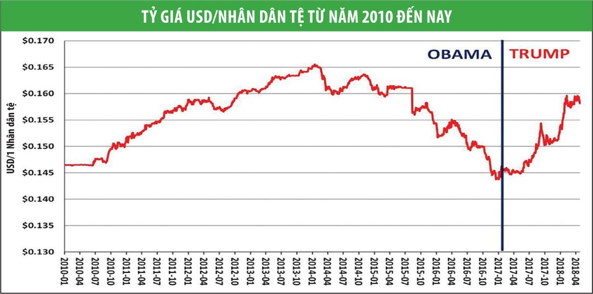 Ngay từ khi còn tranh cử, ông Trump đã thực hiện nhiều chiến dịch chống lại chính sách tiền tệ của Trung Quốc, thậm chí “dán nhãn” quốc gia này là thao túng tiền tệ ngay ngày đầu tiên nhậm chức. Kể từ đó tới nay, đáng lẽ ông Trump đã có không ít cơ hội để tiếp tục có động thái mạnh tay hơn nữa đối với vấn đề tiền tệ giữa 2 quốc gia, nhưng ông không làm. Lý do là bởi, thực tế, đồng Nhân dân tệ đã tăng giá 8,6% so với USD kể từ ngày ông Trump nhậm chức.