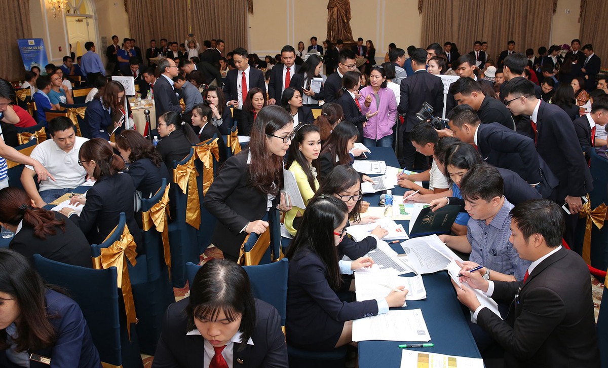 Không khí giao dịch sôi động tại khu vực chọn căn và làm thủ tục đặt mua.