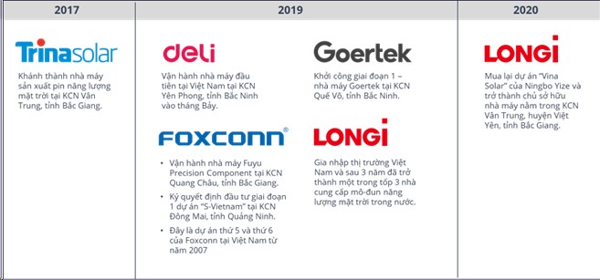 Một số cơ sở sản xuất mới đáng chú ý từ Trung Quốc và Hồng Kông được thiết lập tại Việt Nam từ năm 2017:
